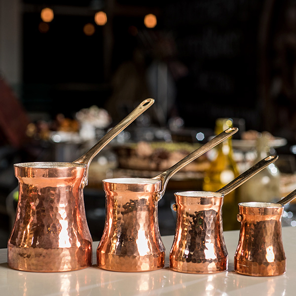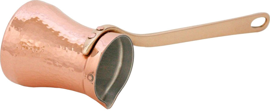 Джезва SOY C2G EGOIST предназначена для заваривания молотых кофейных зёрен по-турецки. Имеет удобную ручку и носик, что позволяет аккуратно наливать напиток в чашку. Ёмкость изготовлена из меди толщиной 1.5 мм с внутренним покрытием из серебра, ручка – из бронзы, клёпки крепления ручки – из меди.