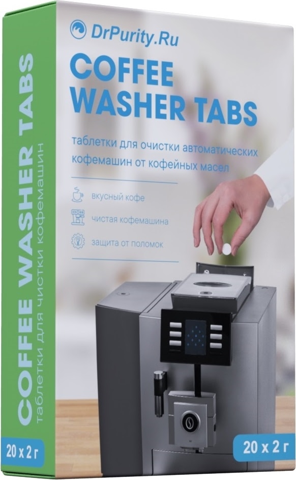 Таблетки для удаления кофейных масел DR. PURITY COFFEE WASHER TABS 20 используются для ежедневной очистки внутренних частей заварочного устройства кофемашины: заварочных блоков, групп, портафильтров. Удаляют кофейный налёт и посторонние запахи, обеспечивают чистый вкус кофейных напитков.